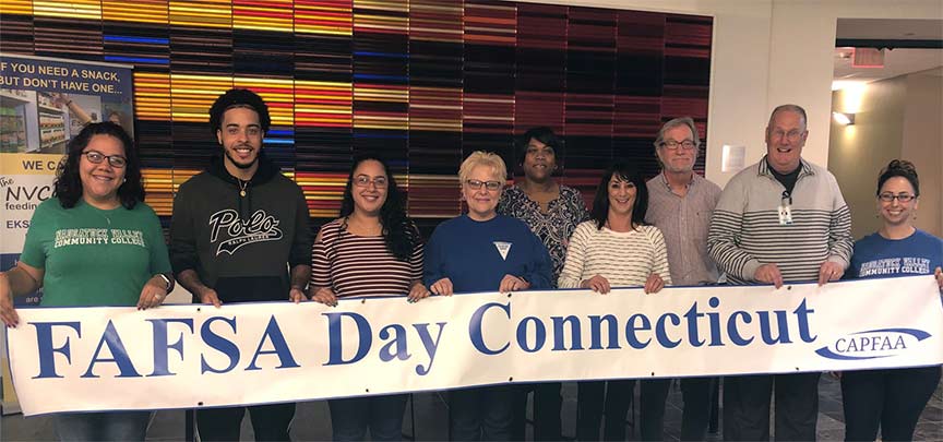 WATERBURY, CT β The prospect of applying for financial aid can seem overwhelming. To help students and their parents with the process, NVCC hosted College Goal Sunday, an annual event that supports students in the process of filling out the Free Application for Federal Student Aid (FAFSA). On Sunday, October 6 at 1:00 pm in Technology Hall on the Waterbury campus of NVCC, 49 students and families attended the free program and completed their FAFSA along with their family members. Financial aid professionals and community-based service providers assisted students and their families. Administrative volunteers included Sandy Vitale, Director of Financial Aid/Tunxis Community College; Dave Welsh, Director Emeritus/Financial Aid Tunxis Community College; Fany Stubbs, Associate Director of Financial Aid, Norwalk Community College; Holly Franquet, Director, The College Place, Connecticut, Student Success & Outreach;
