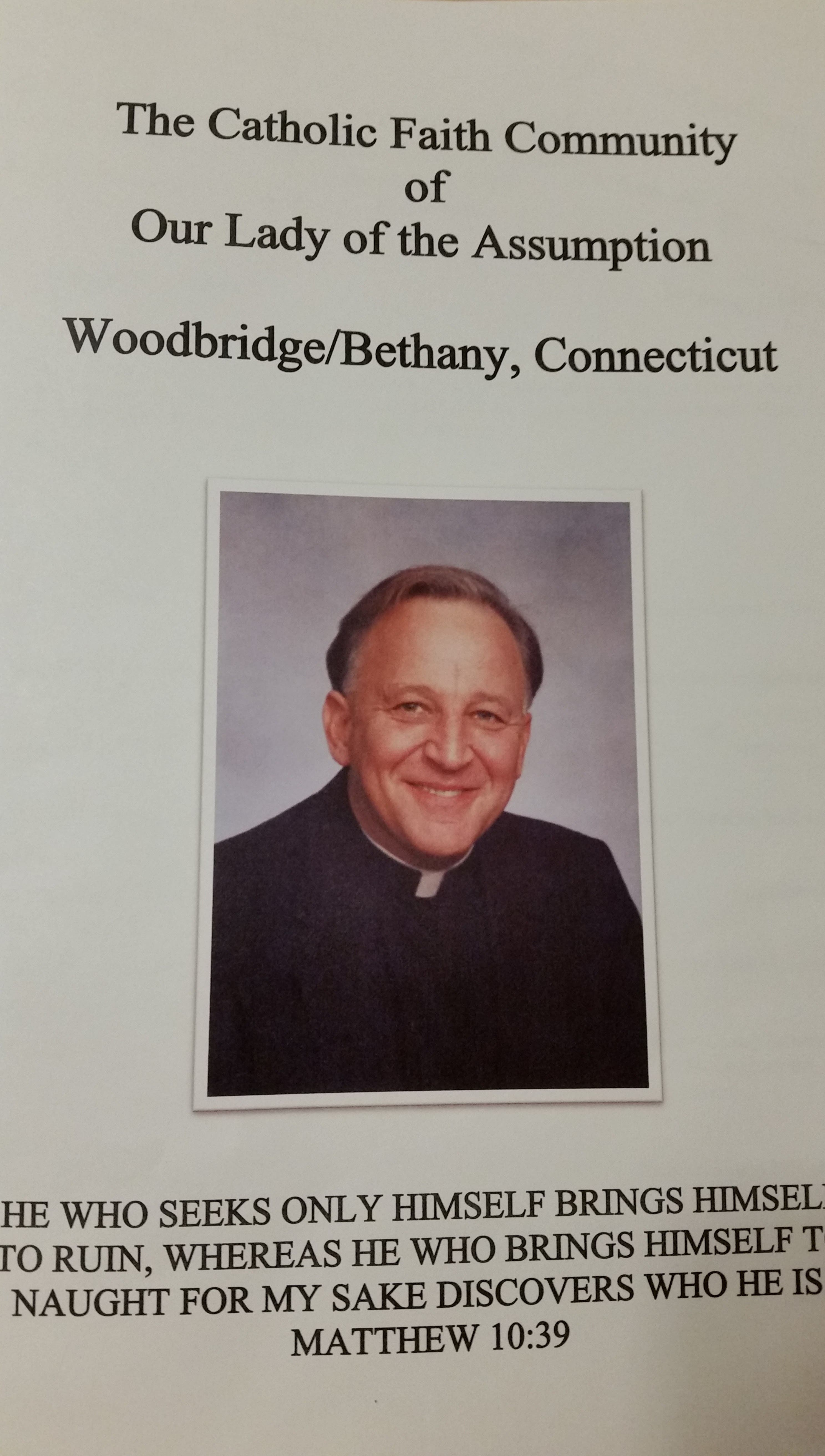 WOODBRIDGE/BETHANY, CT - The Catholic Faith Community of Our Lady of the Assumption Church said goodbye to their beloved former pastor Monsignor Gene E. Gianelli on Monday evening at the Center Road Church with visitation from 4pm to 6pm and a parish Mass that began at 7pm.