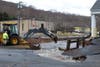 The brook, which runs adjacent to the road, caused a section of the pavement that connects Rubber Avenue and the northern entrance to Mountview Plaza to collapse. Street crews at the scene were using heavy machinery to remove debris from the brook so the water could start flowing normally.