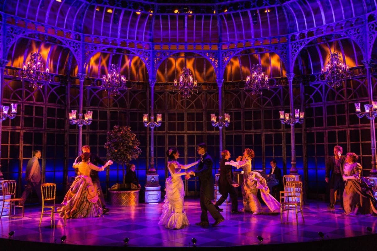 The stunning scenic design is by John Lee Beatty; the lacy metal set is hung with beautiful period chandeliers and is masterfully lit by Ben Stanton. The magnificent costumes from the era were designed by Linda Cho (‘Anastasia,’ ‘Gentleman’s Guide’) and the wig and hair design by Charles LaPointe add to the authenticity. Although days passed in the action of the play, the characters did not change their outfits. Original music and sound design by Mark Bennett gently helped to set the mood; Yan Li was the onstage pianist.