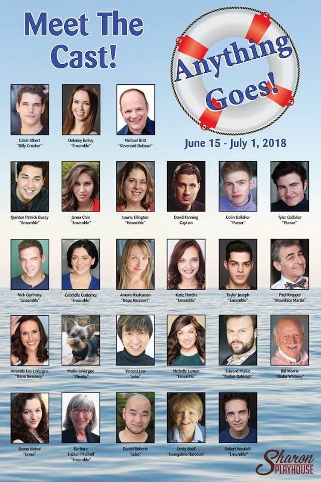 Join the voyage and continually tap your toes at ANYTHING GOES that runs at the Sharon Playhouse June 15 through July 1, 2018