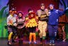 Don Poggio (Underling in DROWSY CHAPERONE with Castle Craig Players) sported a bright yellow suit for his role as Mr. Sun. Music director and resident composer for the company Justin Rugg brought flourish and a British accent to the role of Sgt. Pepper in his 23rd Pantochino production. Shelley Marsh Poggio was royally mighty as the Queen Bee in a fabulous yellow and black gown in her eighth season with this company. Western CT State University grad and production intern Michael Battista (Fish in THE CAT IN THE HAT at WCSU) wore a similarly patterned ensemble in his role of Postman Bee. Anna Hicks made her professional theatre debut as she played Doris the spider.