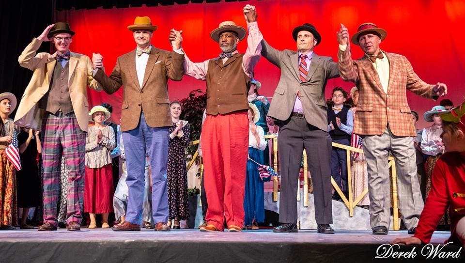 The warring school board member quartet included Zachary Fareira as Oliver Hix, Kalman Zold as Olin Britt, Sam Champagne as Jacey Squires and Anthony Marchetti as Ewart Dunlap at all performances. Their adult counterparts in the Barber Shop Quartet were played by community theatre royalty Bret Bisaillon (THE IRISH AND HOW THEY GOT THAT WAY at the Warner,) Ian Diedrich (WHITE GUY ON THE BUS at Square One Theatre,) Steve Sorriero (IT SHOULDA BEEN YOU in Goshen) and Jacob Rogotzke (SHREK by Newbury Musical Theatre Co.) All of the voices blended very well on βGoodnight Ladies,β βSincere,β βItβs You,β and βLida Rose.β Thank you to these four talented adult actors for volunteering to work with the children in the cast.