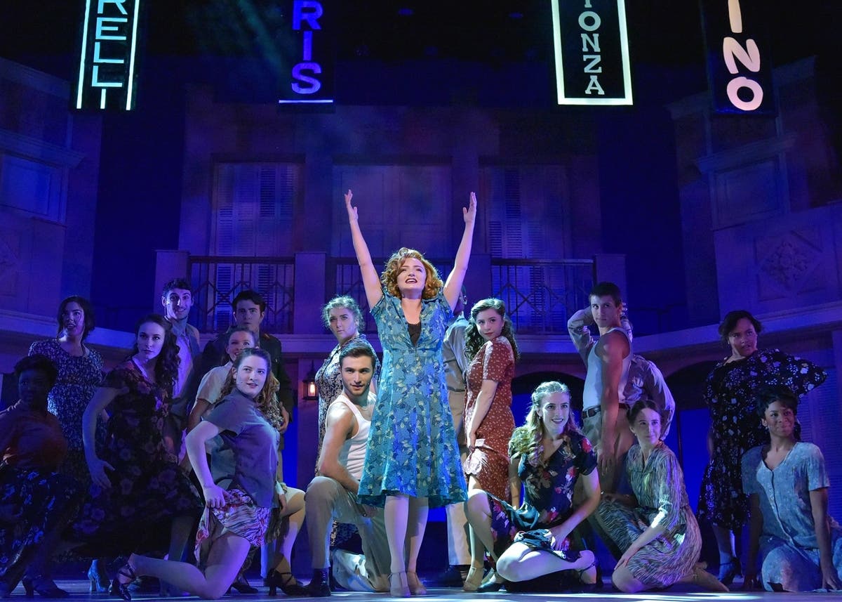 Women in the ensemble cast include Sasha Brown (also the Reigning Eva understudy and a Sister); Saige Bryan (also an Aristocrat); junior Jillian Caillouette (Janet in ‘Drowsy Chaperone’ and here the Young Eva understudy); Ashia Collins; Shea Coughlin (Female Ensemble Swing); Krista Fiederlein (also the Mother); Emma Giorgio (also an Aristocrat); Kayla Hansen (also a Sister); Jaclyn Mercer (also an Aristocrat); Alaina Mueller (also an Aristocrat); Cynthia Rivera (also a Sister); Victoria Wall; and Jennifer Wilson (also the Young Girl Soloist).