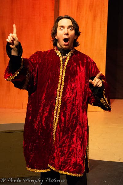 Laura Sturges-Cortez (FOOLS, THE THREE MUSKETEERS, MOON OVER BUFFALO) made it look easy to play the lovely Maid Marian, switching wigs and costumes seamlessly. Kristin Moresi (FOUR WEDDINGS AND AN ELVIS, CLIFFHANGER, ALMOST, MAINE in Goshen) effectively captured the spunk in the role of Deorwynn and thanked Mr. Richnavsky for β(hopefully) making sure I donβt actually stab or maim anyone.β