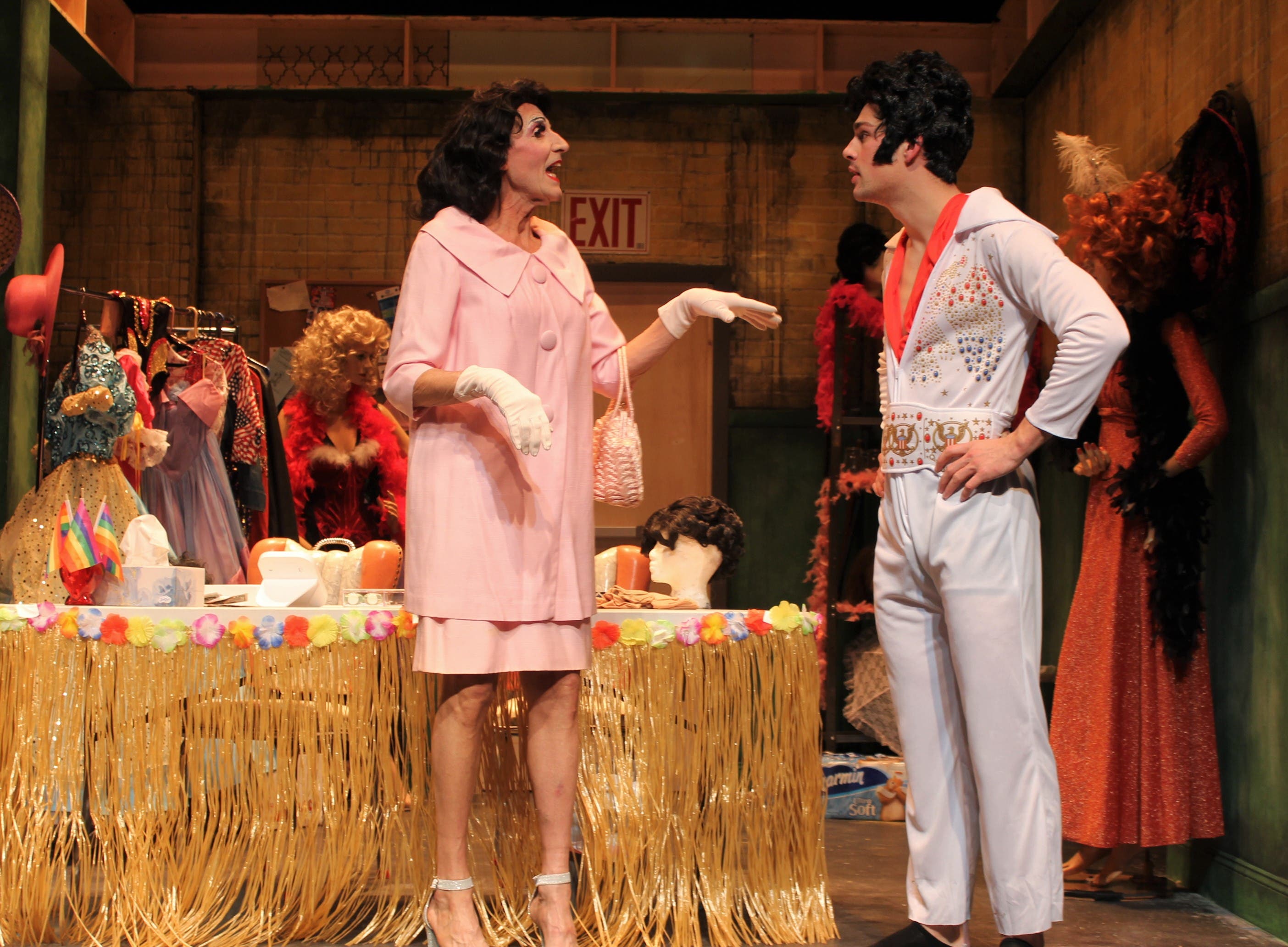 The scenic design of Kyle Dixon includes the modern day apartment of Casey and his wife in Panama City, Florida at stage right and the less-than-luxury dressing room backstage at the bar stage left, as well as the requisite gold Mylar curtain. Lighting design by Doug Macur added to the ambience and kudos to Matt Martin for covering the sound design with plenty of songs for lip-synching. Katrina Paul served as the busy technical director and Tesia Childs must have had to move quickly indeed for her duties as Production Stage Manager.