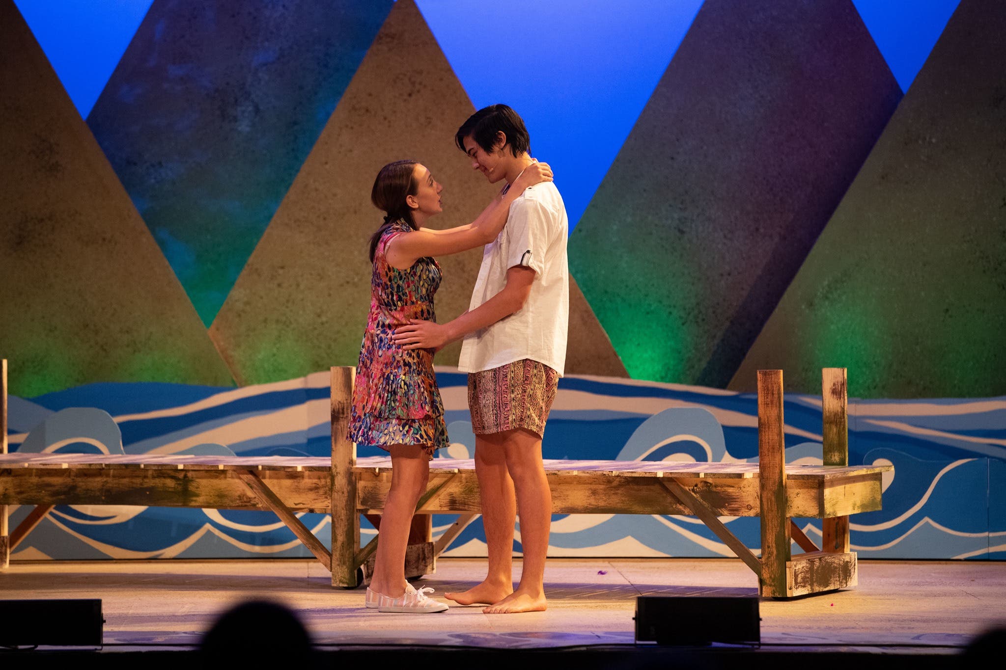 The Taft students were nicely directed by Helena Fifer, with TJ Thompson in charge of music direction.The warm set of Donna’s Taverna, a bedroom or two, and a beach nearby was designed by David Kievit, who also designed the lighting. Chip Machokas did the lighting design that set the tone of a Greek Island. The costumes designed by Lesley Neilson Bowman were perfectly appropriate for the characters in the year 2000 who flashback to ABBA garb, including great platform footwear. Elena Echavarria of the class of ‘21 was in charge of stage management for the show.