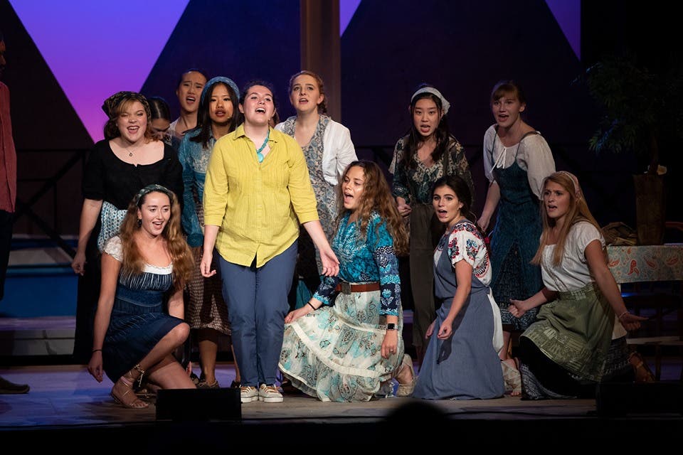 Projections designed by Madelyn Yow ‘23 added to the scenes, especially those for Sophie’s nightmare. David Kievit was the technical director, with Dot Harrop and Cindy Fabian as assistants.