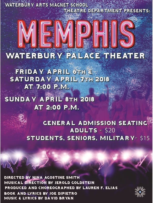 Waterbury Arts Magnet School (WAM) presents the musical βMemphisβ this weekend on the large stage at Waterburyβs Palace Theater, the venue that is attached to their campus. I had the honor of being invited to attend a special preview performance of this important and timely show on Thursday evening and I was blown away by the hard work on display by every single member of this large cast and the excellent production values assembled for the schoolβs big spring musical.