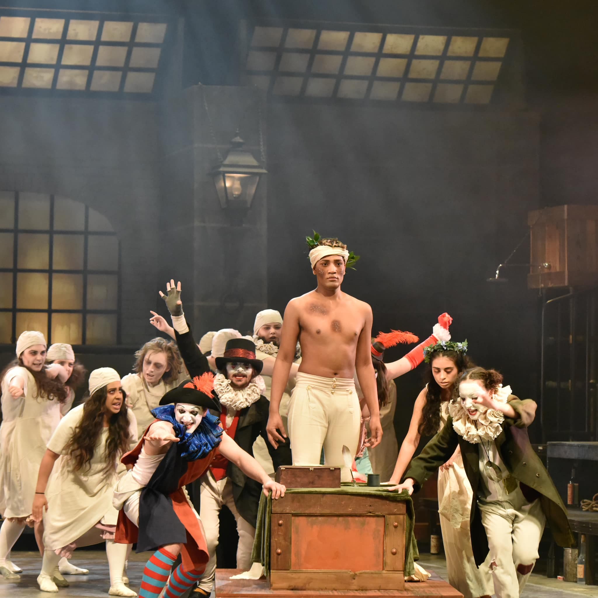 In the roles of four clown-like characters, Asia Aloma of Southington is Rossignol, Raul Calderon (a senior from Waterbury) plays Cucurucu, junior Jamishay Cammann is Kokol and sophomore Colby Groves plays Polpoch.