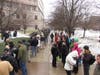 Typically there are no metal detectors at the buildings’ entrances, but because the day’s topic was guns they installed them, causing a long, 100-yard snaking line to get into the legislative building. In fact, it took two hours of standing outside in frigid temperatures and falling snow before we could get in and be screened.