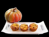 · Quickly insert 1 green pepper strip into the middle of each muffin to make a pumpkin stem.