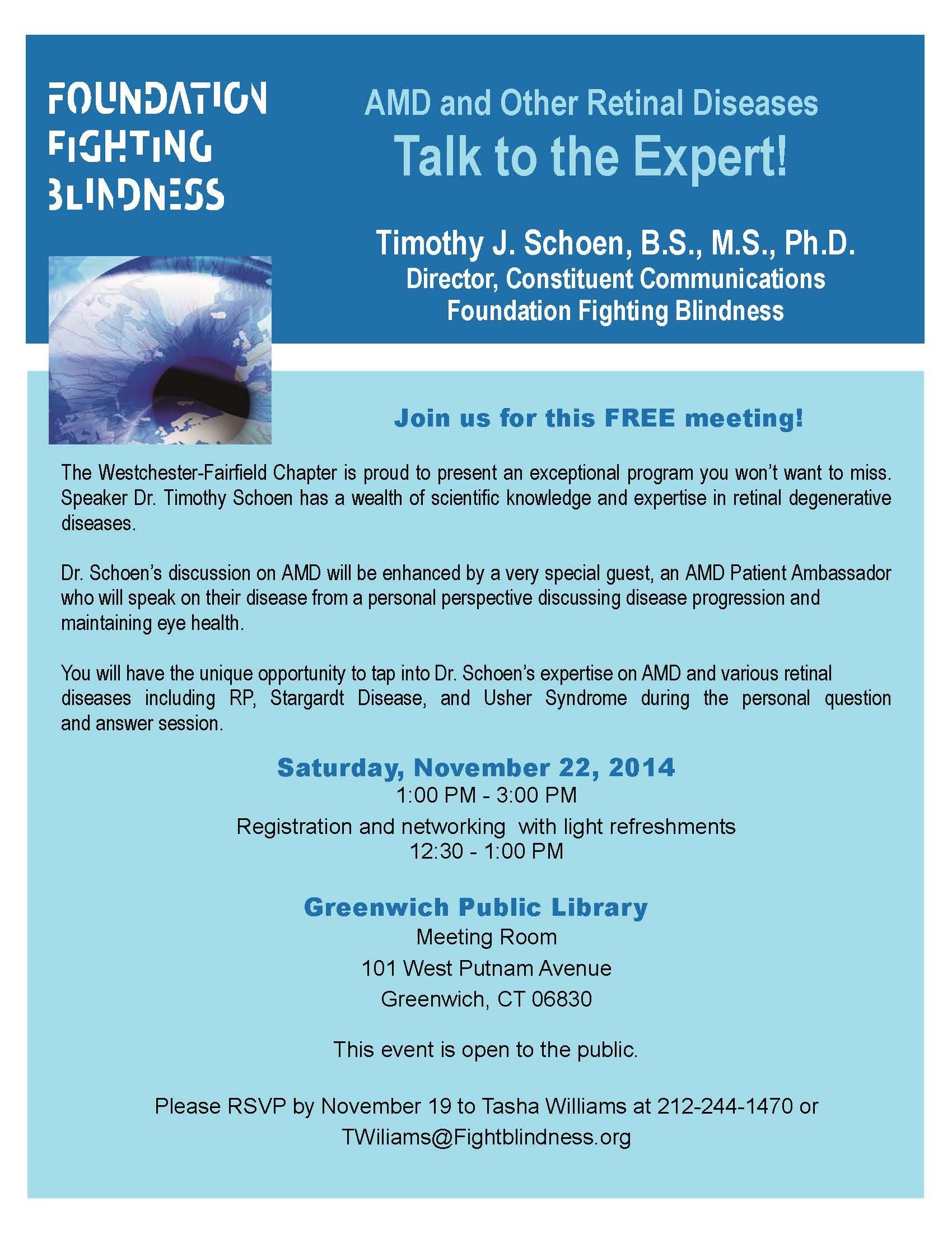 Registration is free but seating is limited. RSVP by Wednesday, November 19, 2014 to Jennifer Geider, 212-244-1470 and JGeider@FightBlindness.org