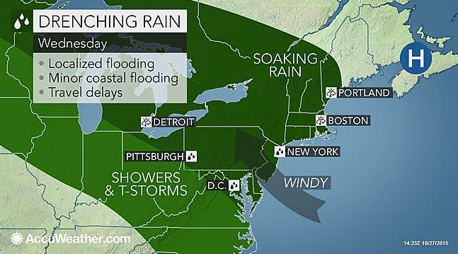 For Hartford and Tolland counties, there is a “Hazardous Weather Outlook” posted for the possibility that strong southerly winds may down small tree limbs and branches causing power outages. Also, the heavy rain could lead to some drainage flooding, the weather service predicts.