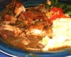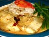 Our meal began with two soups, the first a light, flavorful garbanzo bean and vegetable creation ($3.95)with a hint of smoky bacon, and the second a creamy clam chowder ($4.90) well-stocked with celery and herbs. The soup was delicious but could have used a few more clams. Next came escargot ($6), the classic French appetizer, sitting in a buttery garlic sauce begging to be devoured and sopped up with bread.