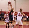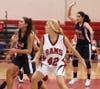 The Rams' Sarah Mannelly continued her dominance on the court, showing good ball movement and toughness inside. She led New Canaan's scoring with 10 points.