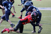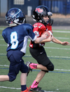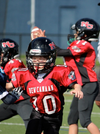 After getting a first down on their opening possession behind solid runs by QB Giovanni Cascione and FB Matthew Salmini, the Reds were eventually forced to punt. Wilton took over, and despite some great defensive play by Sean Watchmaker, Charlie Harrison and Charlie Besgen the Blue 3’s were able to score via a 29-yard TD run by Christopher “Don’t Call Me Al” Capone. After the 2-point conversion, Wilton led 8-0 with 5:20 left in the 1st quarter.