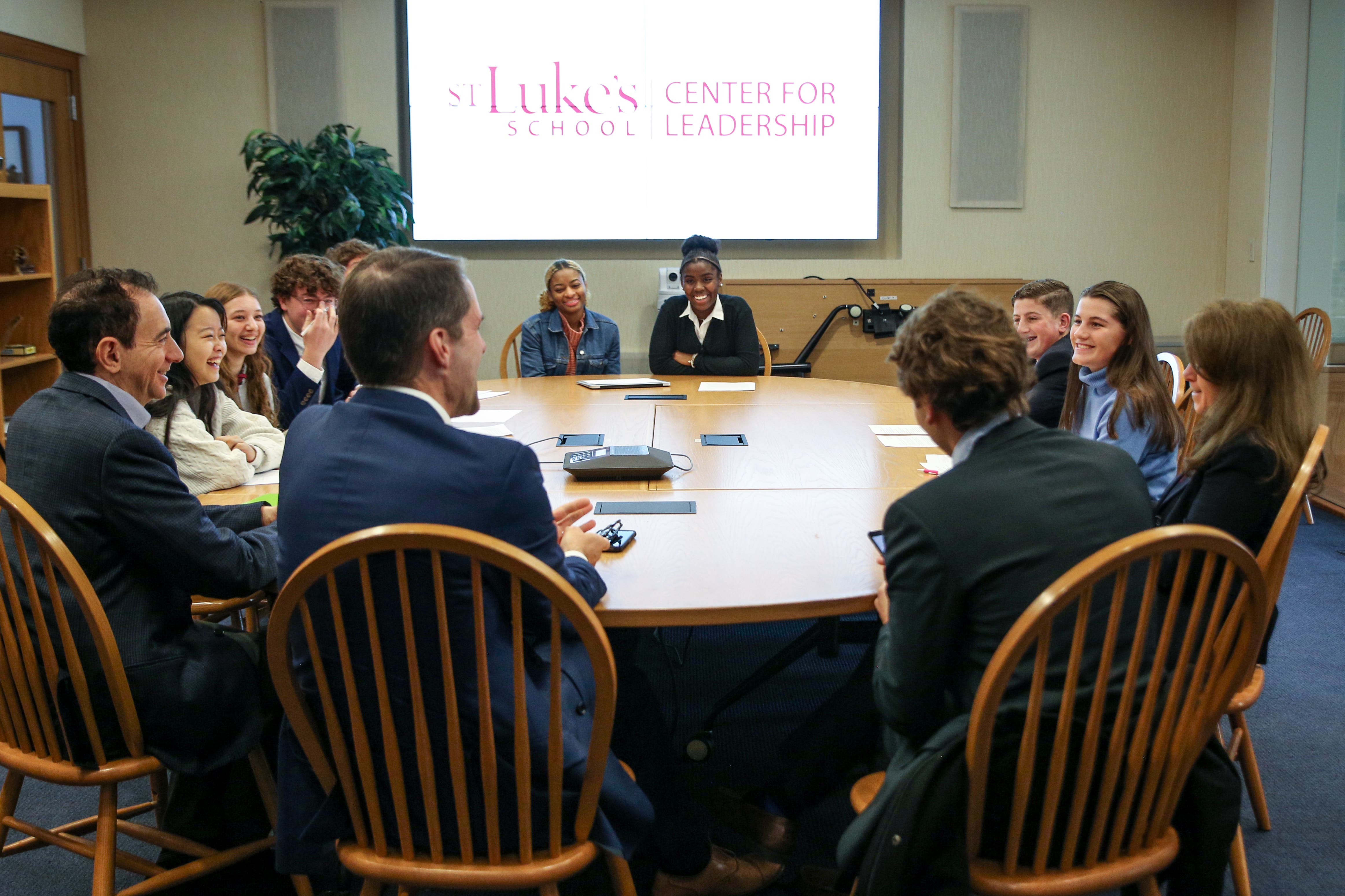 St. Luke’s Center for Leadership Director Kate Parker-Burgard and St. Luke’s parent Michael Gordon, Principal and Chief Executive of the communications firm Gordon Group, helped lead the students through the process of thoroughly researching and preparing their positions on pending legislation.