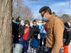 Fourth grade student Henry Macon of Norwalk is peering underneath the silver lid of an aluminum bucket. He and his classmates are participating in the long-standing New Canaan Country School tradition of collecting sap from the tapped maple trees which line the school’s front driveway and dot the landscape of its 75-acre campus.