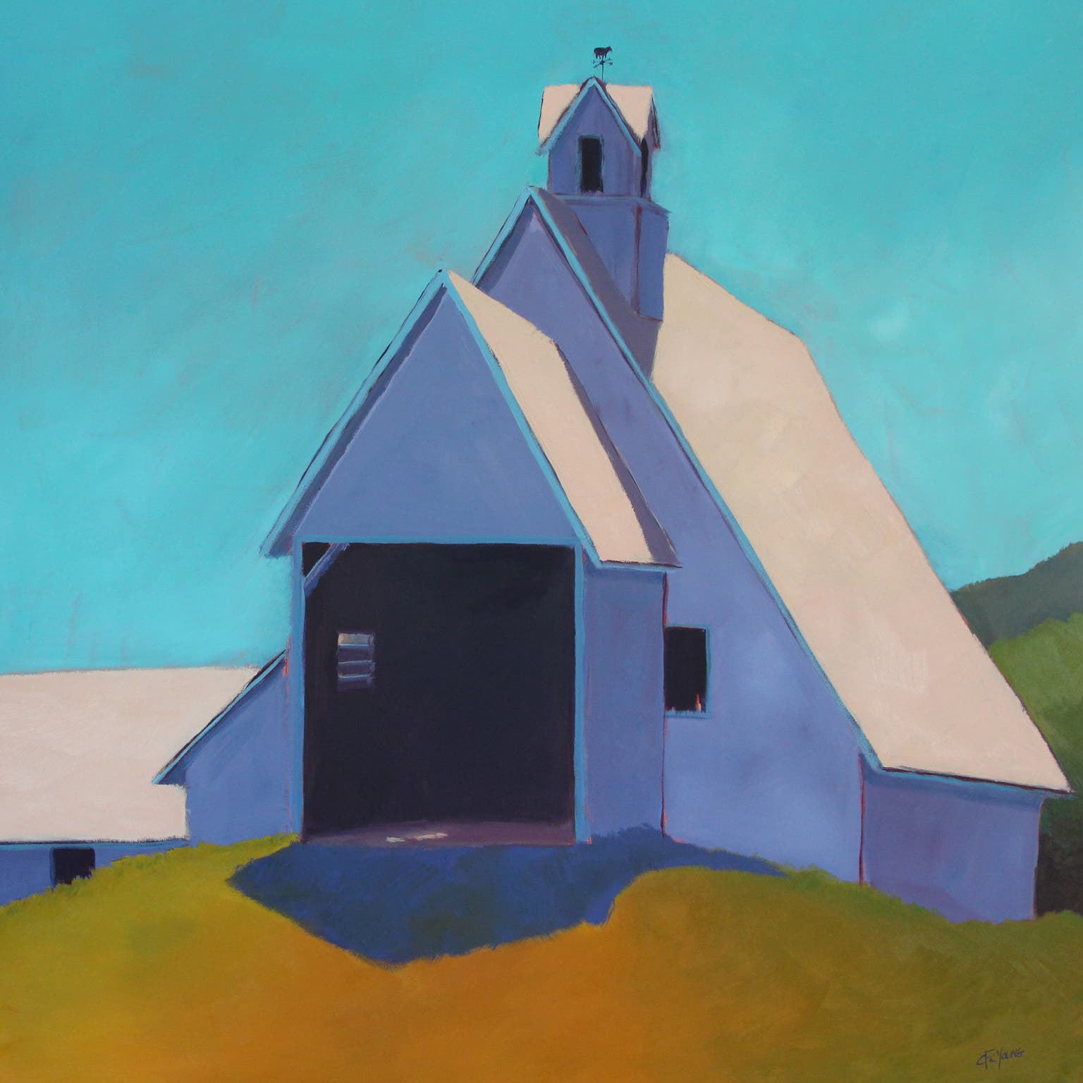 Artist Carol Young says of her subject matter, “When I paint structures I am inspired by those that hold history. Ones that have been part of the landscape for a long time - ones that may be gone soon.” Young’s Hopper-esque interpretation of America’s rural landscape unites dramatic light and shadow with a peaceful calm. Vibrant orange radiates against green. A purple sky unwinds behind a teal roof. Whirring with color and forever stationary, Young’s New England iconic barns are everlasting.