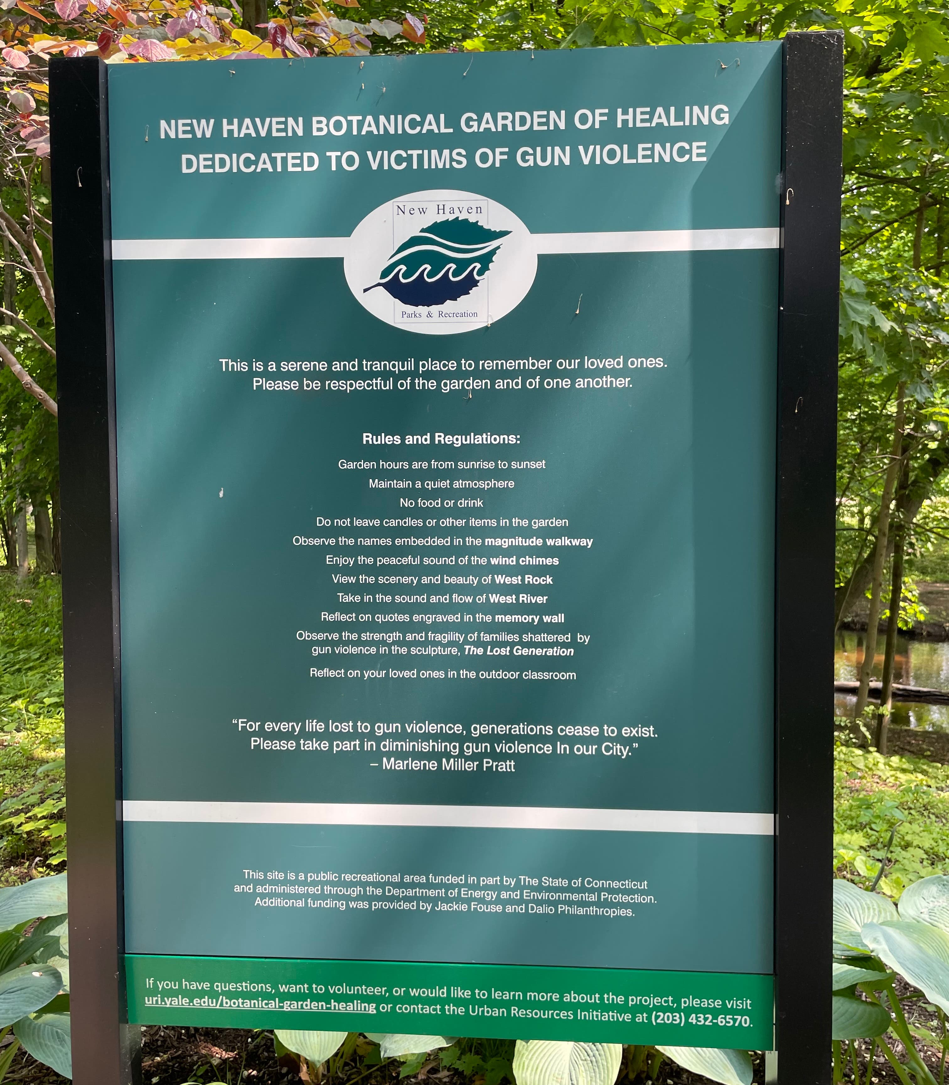 Speakers and readers will include Marlene Pratt, garden founder and mother whose son was lost to gun violence, family members of gun violence victims, Mayor Justin Elicker, US Sen. Richard Blumenthal, Congresswoman Rosa DeLauro, state Senator Martin Looney, Police Chief Karl Jacobson, Fire Chief John Alston, Superintendent-Elect Madeline Negrón, and others.