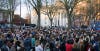 About 9,000 people were cleared by security for the event and several thousand more stood outside the security perimeter, according to the New Haven Office of Emergency Operations.
