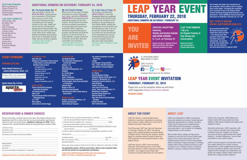 100% of proceeds from the sale of tickets for the LEAP Year Event go to support the on-going programs of LEAP, a New Haven-based academic and social enrichment program for children and youth ages 5 to 23 in the city’s high poverty neighborhoods.