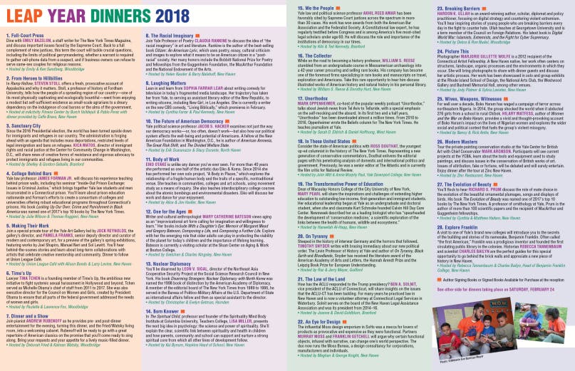 The 2018 dinner guests of honor, hosted in intimate gatherings in private homes and elegant venues on February 22, are: