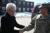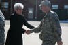 Shaking each serviceman’s hand as they stepped from the bus, Wyman gave each a smile and the reassuring thought that “your friends and family are waiting for you” inside the hangar.