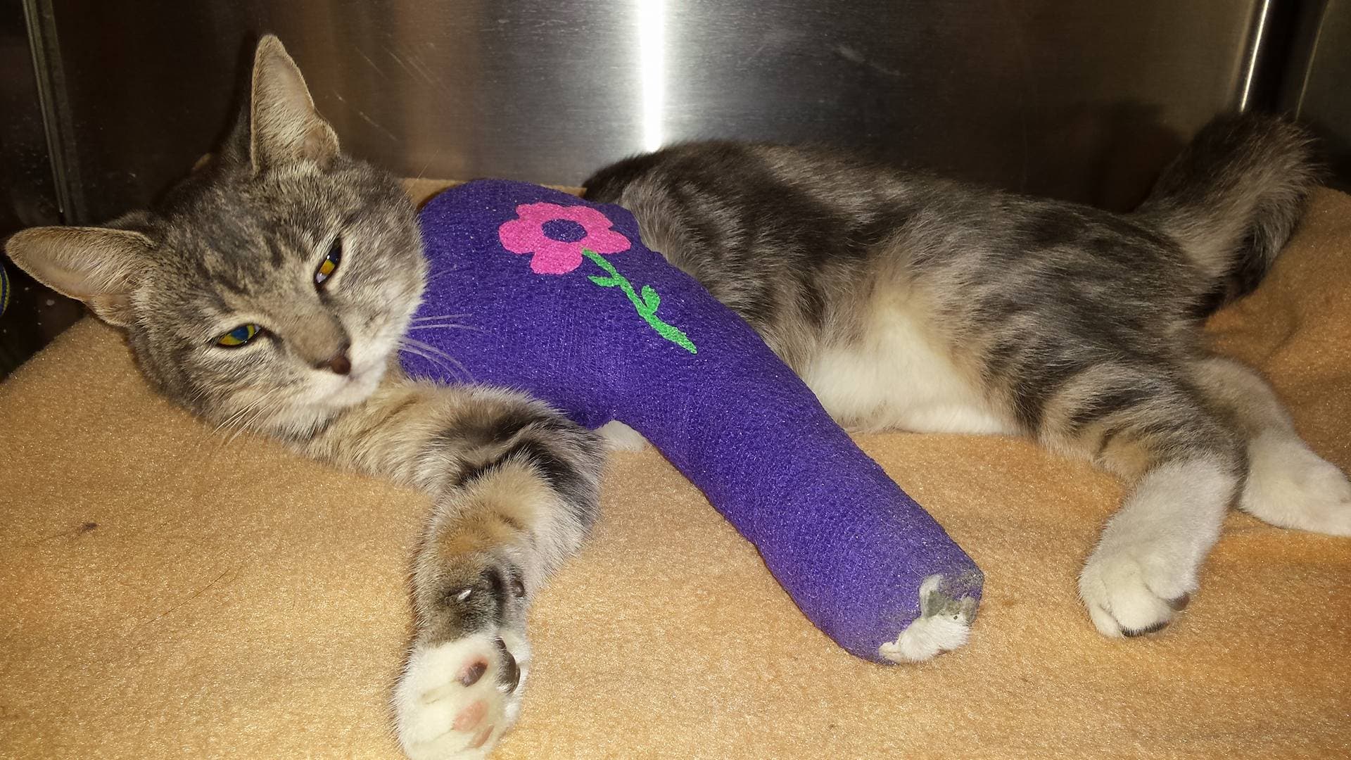 A four-month-old kitten's leg was broken by children, prompting Animal Control to issue a plea for donations that poured in from all over.