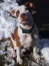 Midas is a not-quite six month old pit bull. He is super friendly, and weighs about 35 pounds.