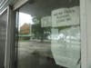 The building at 227 Willets Ave. has one of the starkest juxtapositions of window signs I've seen. On one side: "We're open! Please come in!" On the other: "Private property. No trespassing."