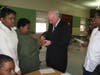 “You work with [President Barack] Obama?” they ask, wide-eyed. Yes, Courtney says as he signs their notebooks, he works with Obama. In fact, on Thursday, Courtney was visiting the school to see the result of that work.