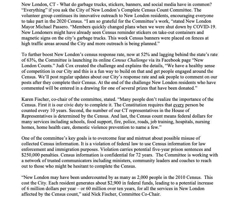 This press release was produced by the City of New London. The views expressed here are the author’s own.