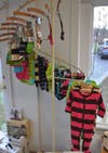 Shop owner Pam Davis specializes in all-natural items for children, pets and the home. Shelves display wooden toys hand-crafted in Maine, organic baby soaps and baby clothing. A bassinet displays handmade blankets and bedding by Newtowner Mary Fellows, while colorful organic baby clothing hangs playfully from a wooden rack.