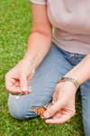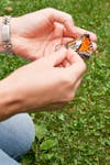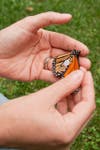 "You just grab the forewing," she said as she delicately grasped the wings between a thumb and third-finger while resting the butterfly's hair-thin black legs on her index finger. "I've found they won't struggle if their feet are touching something."