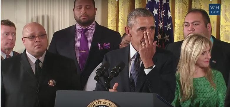 “Every time I think about those kids, it gets me mad,” Obama said, pausing to wipe away tears.