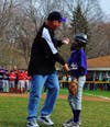 The teams marched to Wall Field in a small parade before the introduction of each sponsored team kicked off the event. A prayer for protection was said for the teams. Allisa Hoyt sang a wonderful rendition of the 'National Anthem.' NBLL Vice President Mark Cooney threw the ceremonial first pitch to catcher Danny Soliwoda to officially start the season.