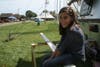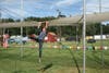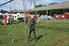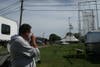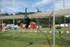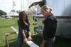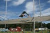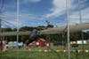 She stops to discuss the characteristics of the safety net and its tension with some family members standing by. With a toss of her stick straight brown hair, she ambles back to a picnic table that's been set up between the trailers, where other family members are talking and eating.