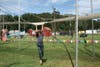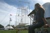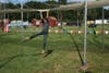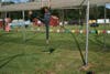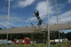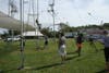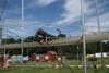 Standing nearby the picnic table, Pastor Jeff, arms folded, eyes the trapeze apparatus and jokes that he'd love to climb to the top, but that his wife probably won't let him.