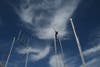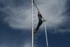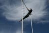 She looks over at the high wire and trapeze. Then back again. Then back at the high wire and trapeze.