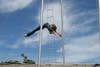 She turns toward me and says she loves putting in a good performance or practice, then letting her fingers slip from the high wire apparatus and, facing up towards the sky, floating down to the safety net below, landing with a big bounce.