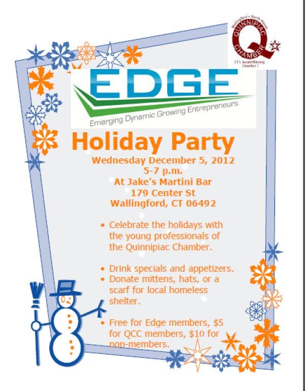 Come join the Quinnipiac Chamber of Commerce's Young Professionals EDGE group for our Holiday Happy Hour.