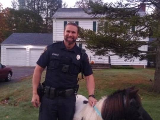 “Ofc. Petrillo was able to gain Annie's trust and get a leash from a nearby neighbor,” police wrote in a post on Facebook. “He returned Annie to her ranch, but not before the two took a quick photo op. Nice work Officer Petrillo.”
