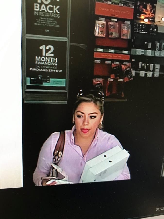The suspect is described by police as a white Hispanic female in her mid-30s with brown long hair. She was wearing a long-sleeve pink shirt and black pants and was also carrying a white/tan purse.