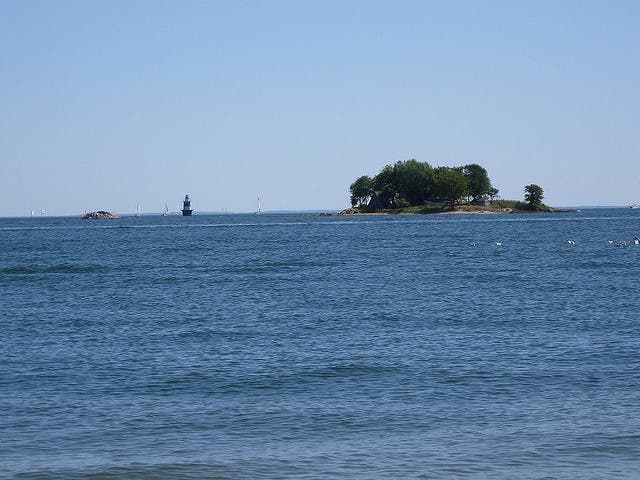The lighthouse is about 1.5 miles from the Connecticut coast and has no dock.