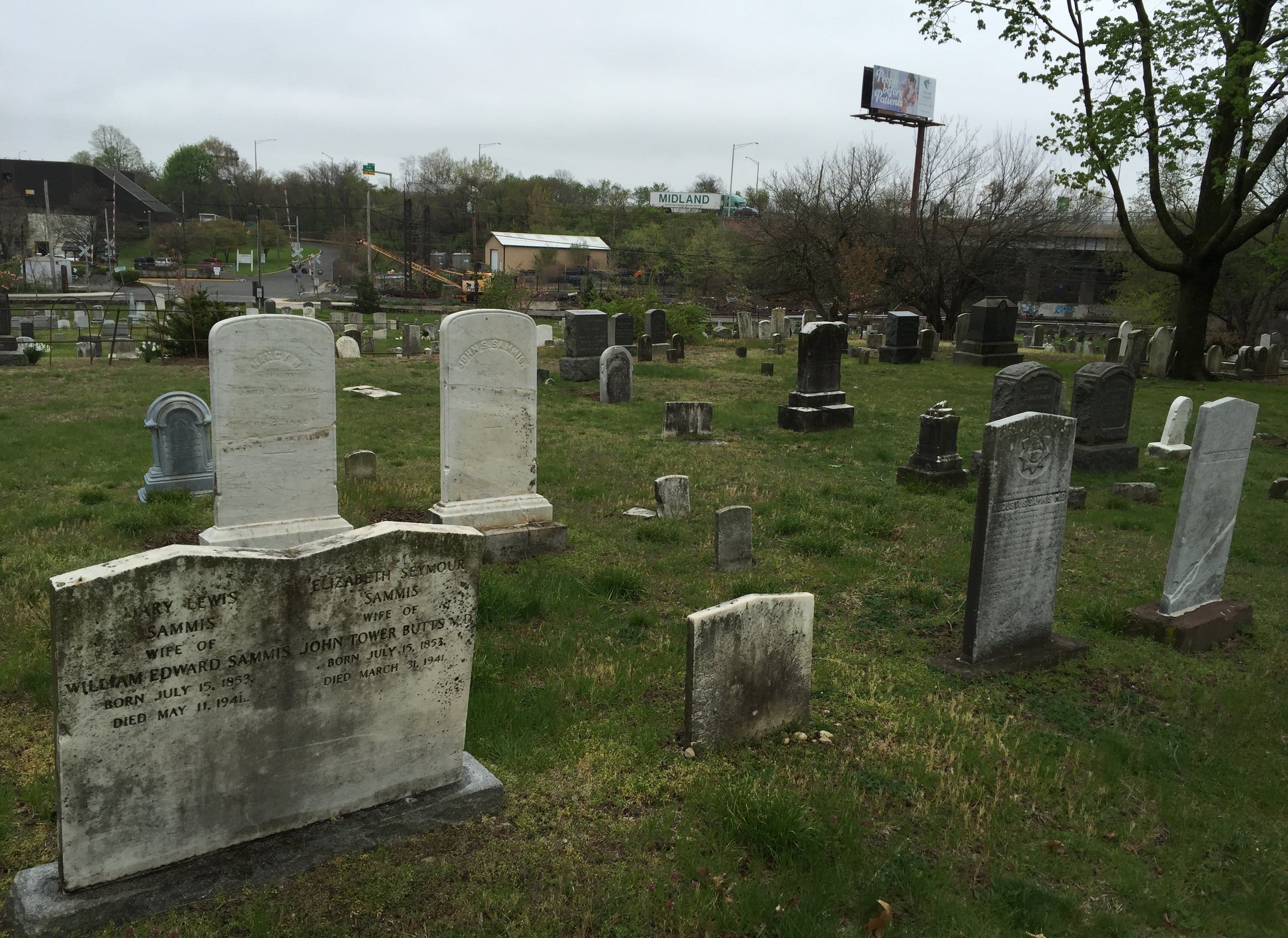 Past hordes of noisy trucks and construction machinery on Crescent Street, where the railroad cuts below the underpass for Interstate 95, graves sit intact but stained with age.