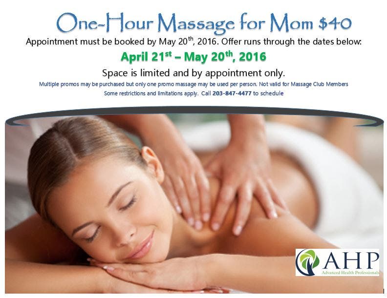 There is no reason to live in pain. Our philosophy at AHP is to "Live Well, Feel Well, Age Well." We help our patients accomplish this through chiropractic, physical therapy, acupuncture and massage therapy. We have a current Massage Therapy special of an hour-long massage for $40 [normally $85]. But it is a limited time offer. All appointments must be scheduled by 5/20/2016.