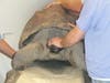 Arizona, a 20-year-old, 300-lb. Galapagos tortoise who's kept in Pound Ridge, NY, has a bad hind leg. Veterinarians at the Stamford pet hospital of Cornell University Veterinary Specialists did a CT scan on him to find out what's wrong. Members of his spe