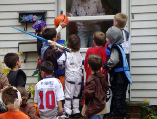 - Carry a flashlight so that you will be seen as you walk from house to house.